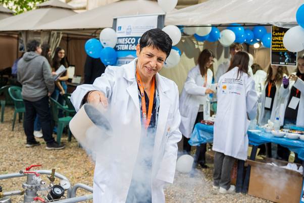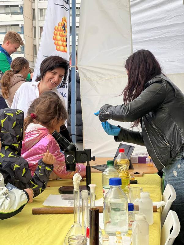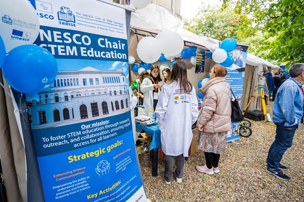 Ediția din acest an a fost însă una specială, deoarece Catedra UNESCO – Transfer of Research Results into STEM Education (TRRISE) a participat pentru prima dată la Noaptea Cercetătorilor Europeni cu un stand propriu, desfășurat la Muzeul Geologic Național din București. Catedra UNESCO are ca misiune sprijinirea formării continue a cadrelor didactice și reducerea inegalităților în accesul la educație științifică. La stand, au fost prezentate activități și demonstrații captivante pentru vizitatori, ilustrând modul în care rezultatele cercetării pot fi integrate în procesul educațional STEM și cum pot contribui la promovarea sustenabilității și responsabilității față de mediu.