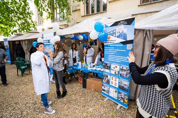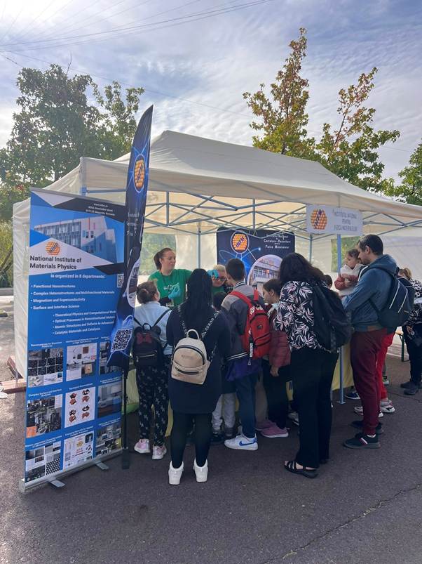 Ca în fiecare an, Institutul Național de Cercetare-Dezvoltare pentru Fizica Materialelor (INCDFM) a fost prezent la Noaptea Cercetătorilor Europeni, participând activ la promovarea științei și a dialogului dintre cercetători și public. Anul acesta, INCDFM a participat pe 26 septembrie în Piața Centrală din Măgurele și pe 27 septembrie în Parcul Lumea Copiilor din București, unde cercetătorii au oferit experimente demonstrative și prezentări interactive. Activitățile au ilustrat modul în care cercetarea fundamentală în fizica materialelor se transformă în aplicații tehnologice sustenabile, relevante pentru viața de zi cu zi și pentru protecția mediului. Interacțiunea directă cu vizitatorii, de la copii la adulți, a creat un cadru propice de învățare și dialog, aliniat temei ediției: „Știință pentru Terra: sustenabilitate prin responsabilizare”.